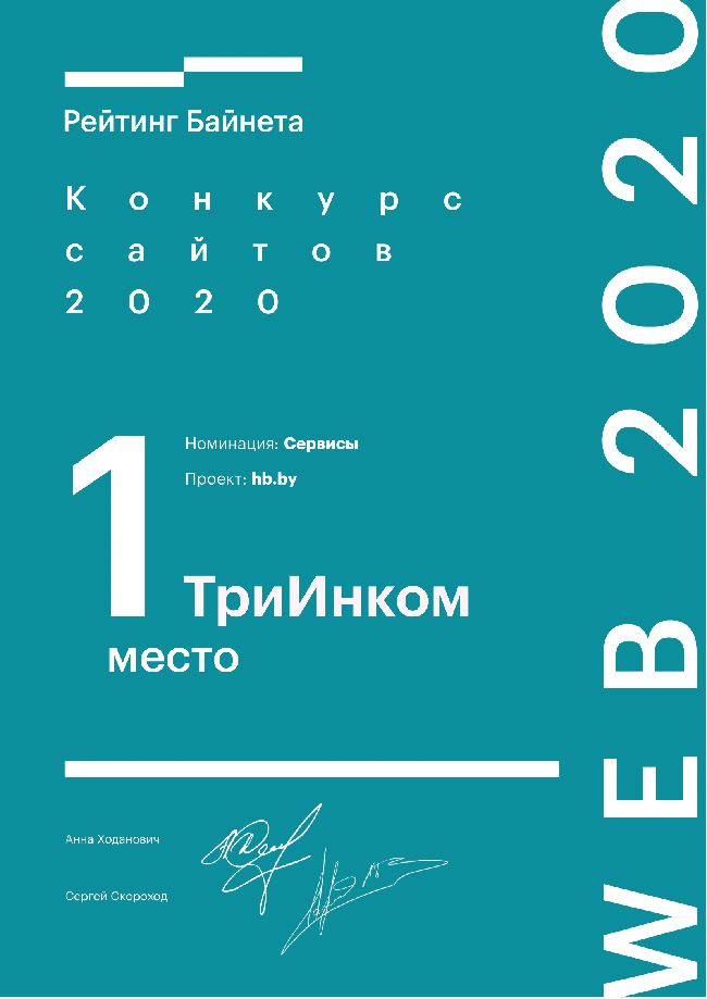 1-ое место на конкурсе сайтов «Рейтинг Байнета 2020» в номинации «Сервисы»