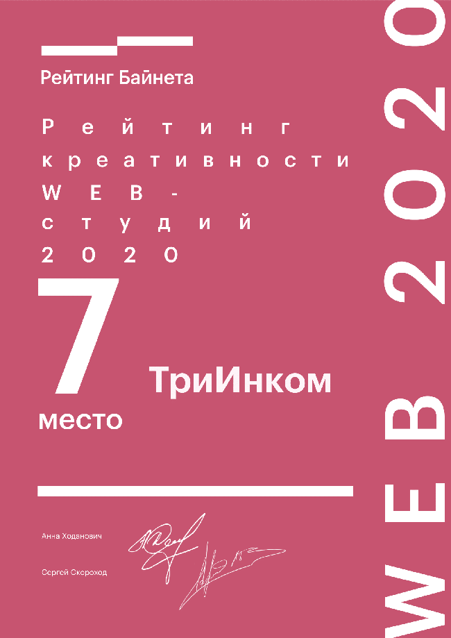 7-ое место в Рейтинге креативности на «Рейтинг Байнета 2020»